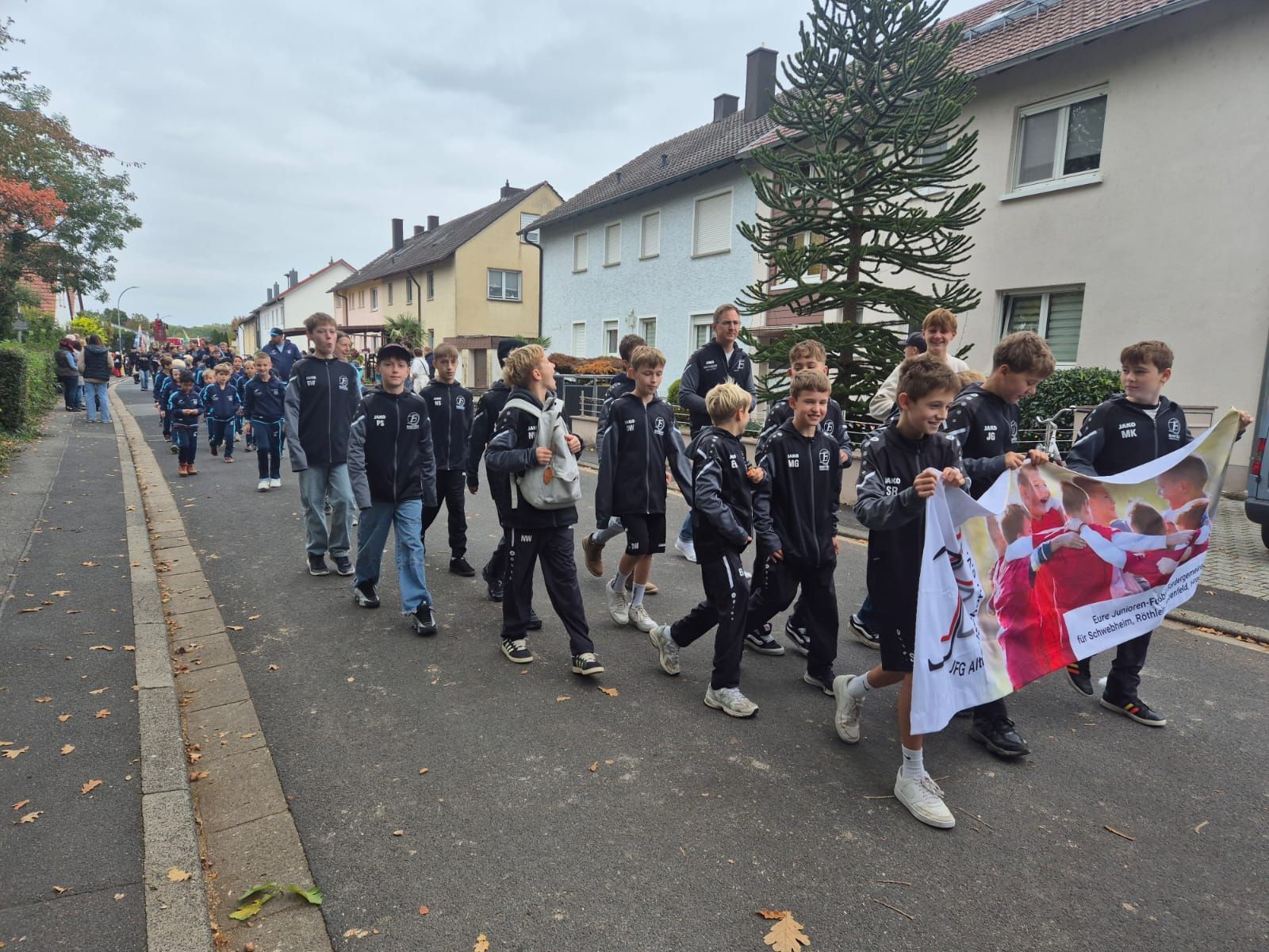 Nach einer regenreichen Woche spielte das Wetter am Erntedanksonntag zum Glück mit. Bei dem schönen Festumzug durch die Ortsmitte von Röthlein bis zum Festplatz waren wir mit unseren Jugendlichen zahlreich vertreten und hatten viel Spaß. Einige Mannschaften hatten Spiele und konnten leider nicht dabei sein.